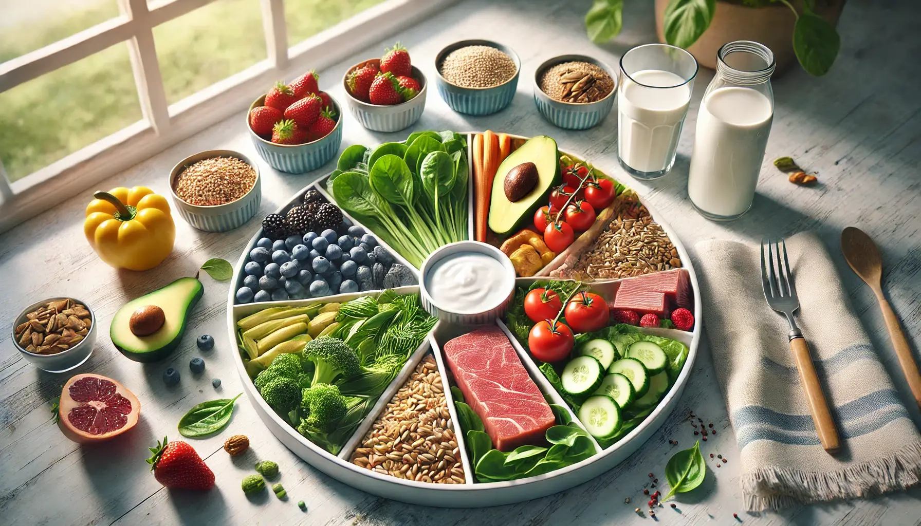중년 여성들을 위한 균형 잡힌 식단은 다양한 식품군을 포함하며, 적절한 칼로리 섭취를 목표로 합니다. 과일, 채소, 단백질, 곡물, 유제품 등을 균형 있게 포함하여 하루 세끼를 구성하세요. 이러한 균형 잡힌 식단은 체중 관리와 전반적인 건강 유지에 중요합니다.