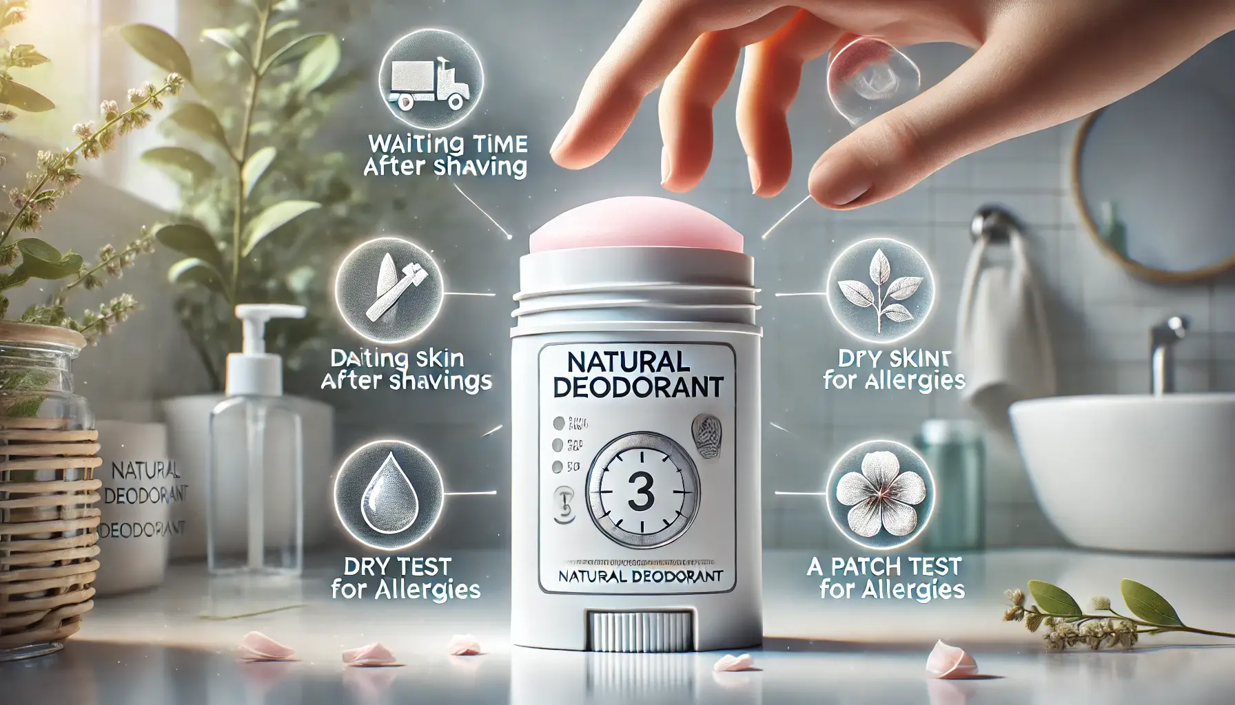 새로운 제품을 시도하기 전에 소량을 피부에 발라 반응을 확인하세요. 천연 성분이라도 특히 민감한 피부를 가진 경우 알레르기 반응을 일으킬 수 있습니다. 작은 부위에 패치 테스트를 실시하여 데오도란트가 알맞은지 여부를 확인할 수 있습니다.