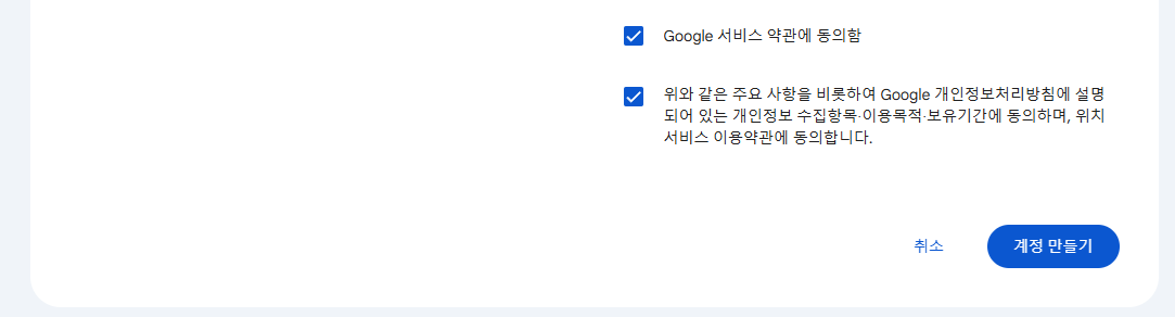 약관에 동의한 후 계장민들기를 클릭하면 계정이 만들어 집니다.