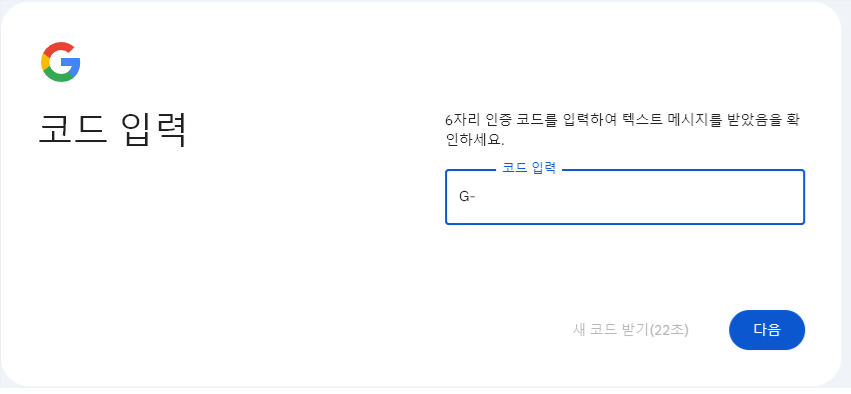 핸드폰의 문자메시지를 확인하여 수신한 코드 6자리를 입력합니다.